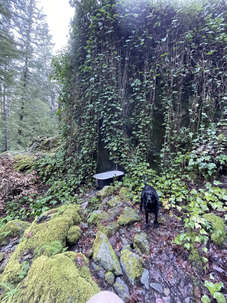 The bathtub itself was as dreamy in person as pictured. The cool mountain air and scenic views, this bathtub was the absolute best. I felt right out of a Disney movie bathing in this. It was also so cozy being in the cliff side tucked under the ivy. My dog Sadie kept me company while I tubbed the day away.