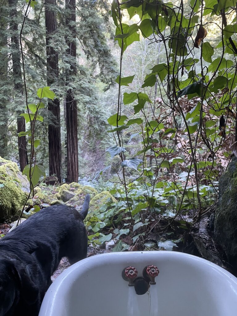Late one night on a VRBO scroll fest, I stumbled across this picture perfect outdoor bathtub. As an avid bath enthusiast, I was captivated, I booked right away. Nestled in the redwoods, a fairy tale clawfoot emerged from an ivy cliff face. In this moment, I realized this was not going to be just any rental.