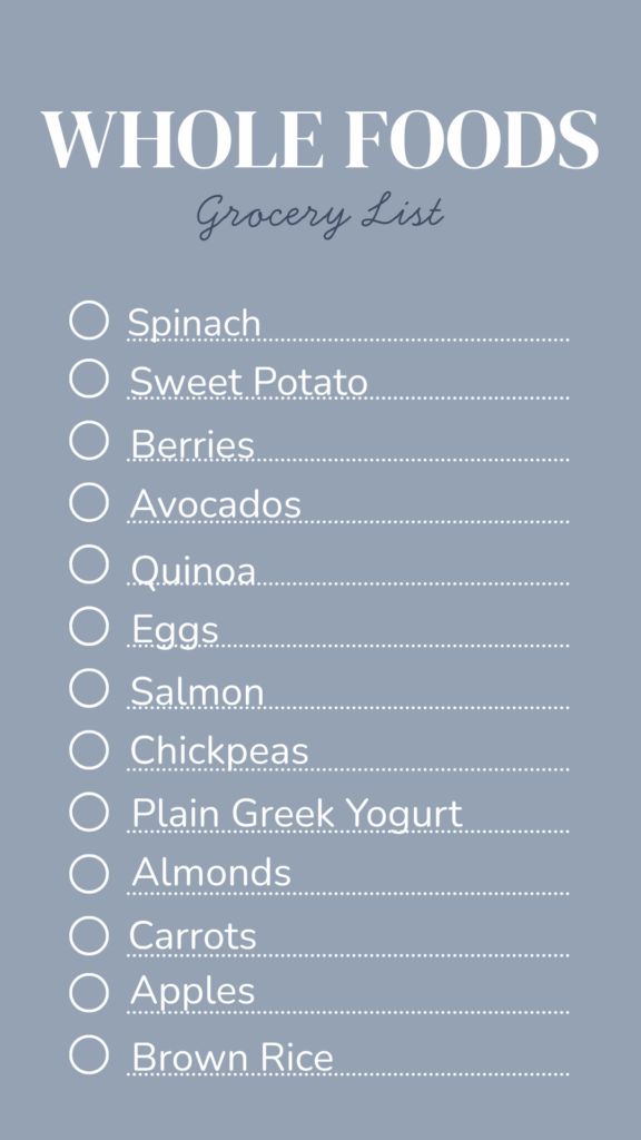 If you are unsure of what whole foods are, check out my grocery store list below. These are staples that I love to have on hand in the fridge, freezer, and cupboard.